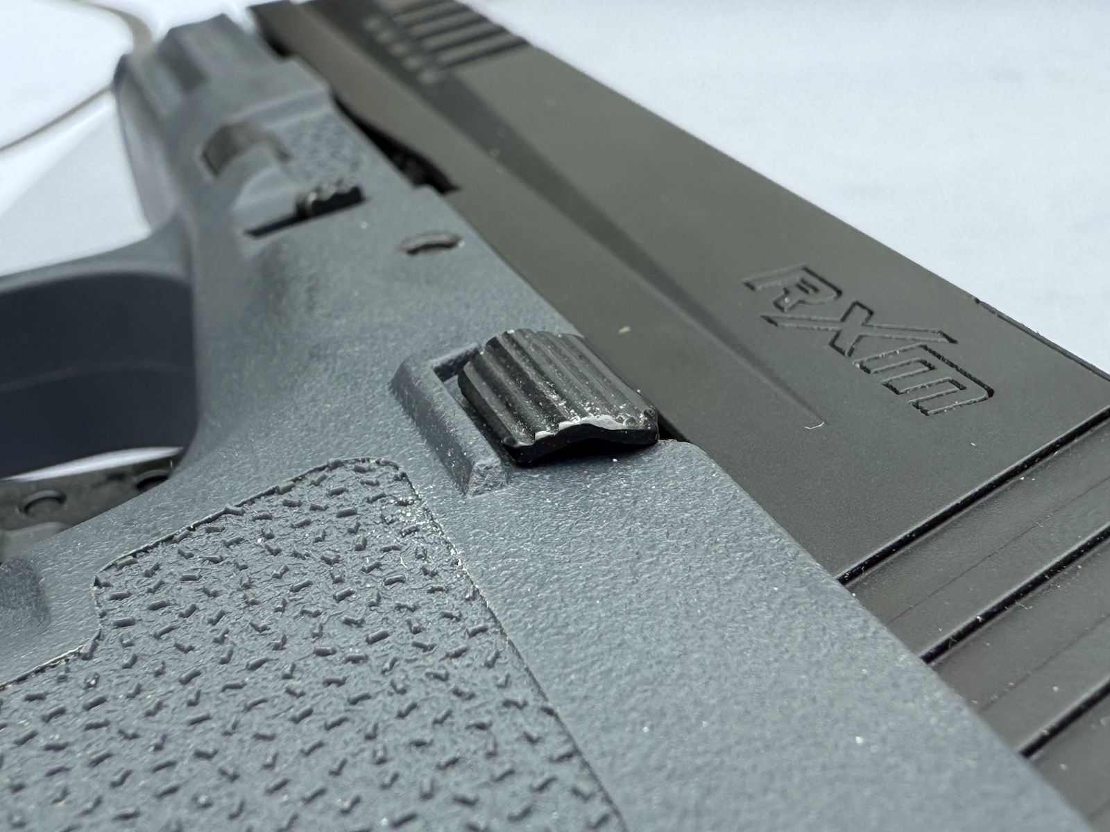 - Na RXM najdeme standard Glock Gen3, záchyt závěru a záchyt zásobníku jen na levé straně, tedy určené pro pravoruké střelce.