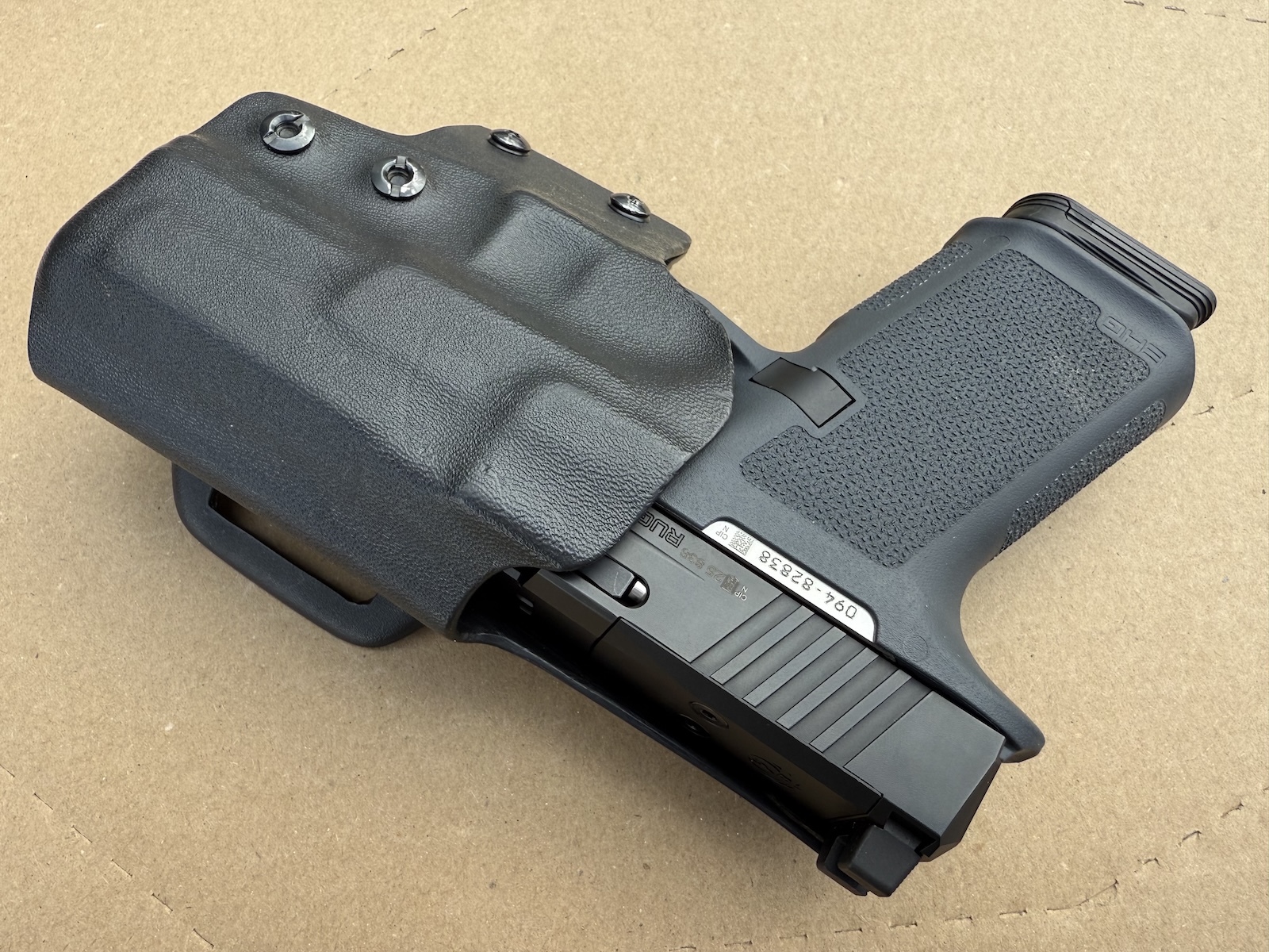 - Všechny pouzdra původně pro Glock 19 Gen3, která jsem vyzkoušel (KydexroW, RH Holsters, Safariland), fungovala s Rugerem RXM výborně a plnohodnotně.